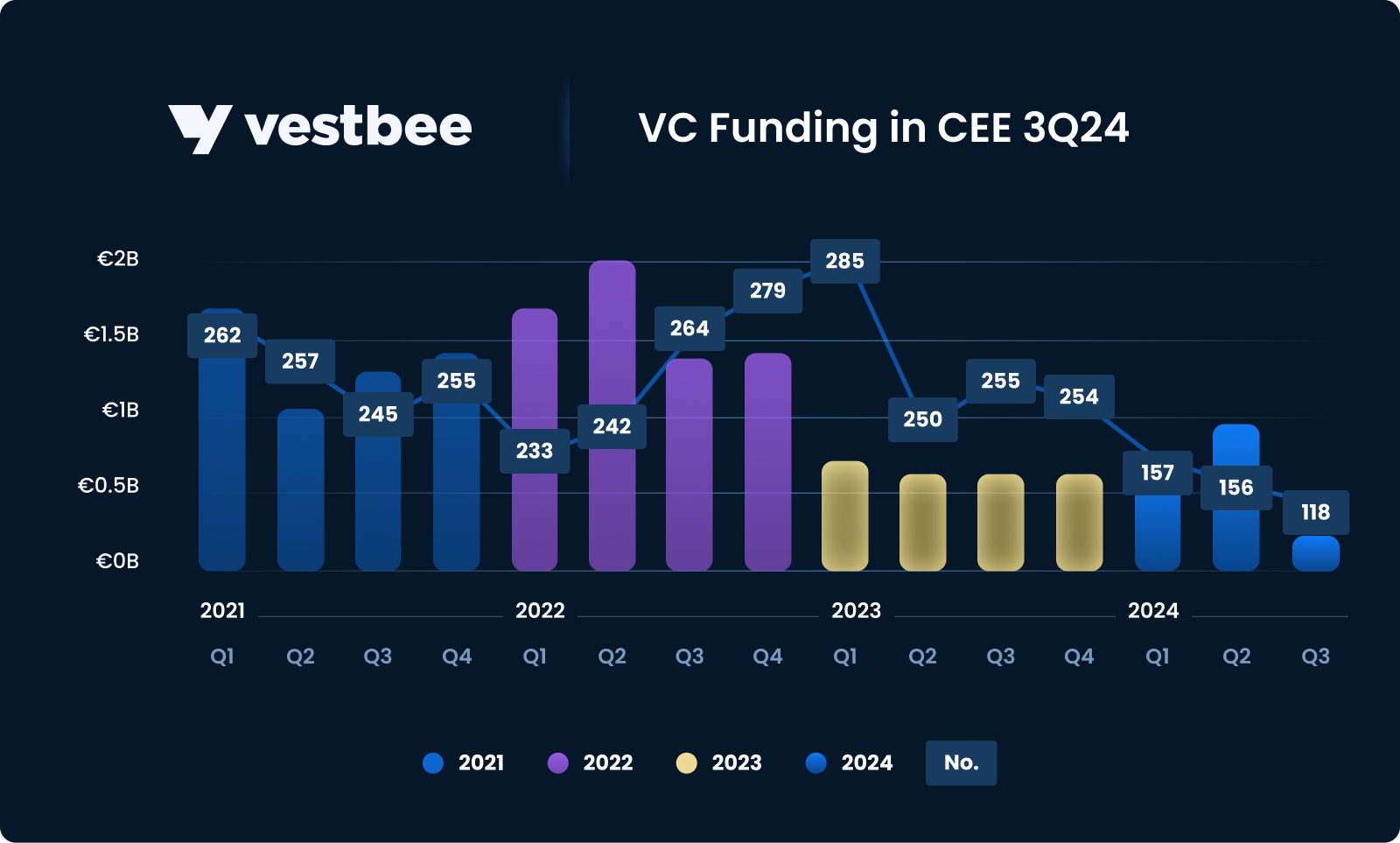 The funding challenges in the CEE region reflect a broader trend of contraction in venture capital markets. Global VC funding totaled $66.5 billion in Q3 2024, marking a 16% quarter-on-quarter decline and a 15% year-on-year drop, with reduced late-stage mega-deals driving much of the slowdown.