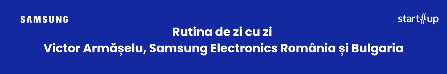 Discuția start-up.ro cu Victor Armășelu, vicepreședinte Samsung Electronics România și Bulgaria este construită pe un format numit „Rutina de zi cu zi”, unde discutăm cu manageri și antreprenori din România despre rutina lor zilnică, ce le influențează diminețile și despre cum își fac timp pentru sine într-o epocă a vitezei. Tehnologiile AI influențează viața și ne ajută să devenim mai productivi. Din 2024 Samsung a introdus inteligența artificială în dispozitivele mobile Samsung Galaxy S24 pentru productivitate, traduceri în timp real sau transcrieri inteligente.