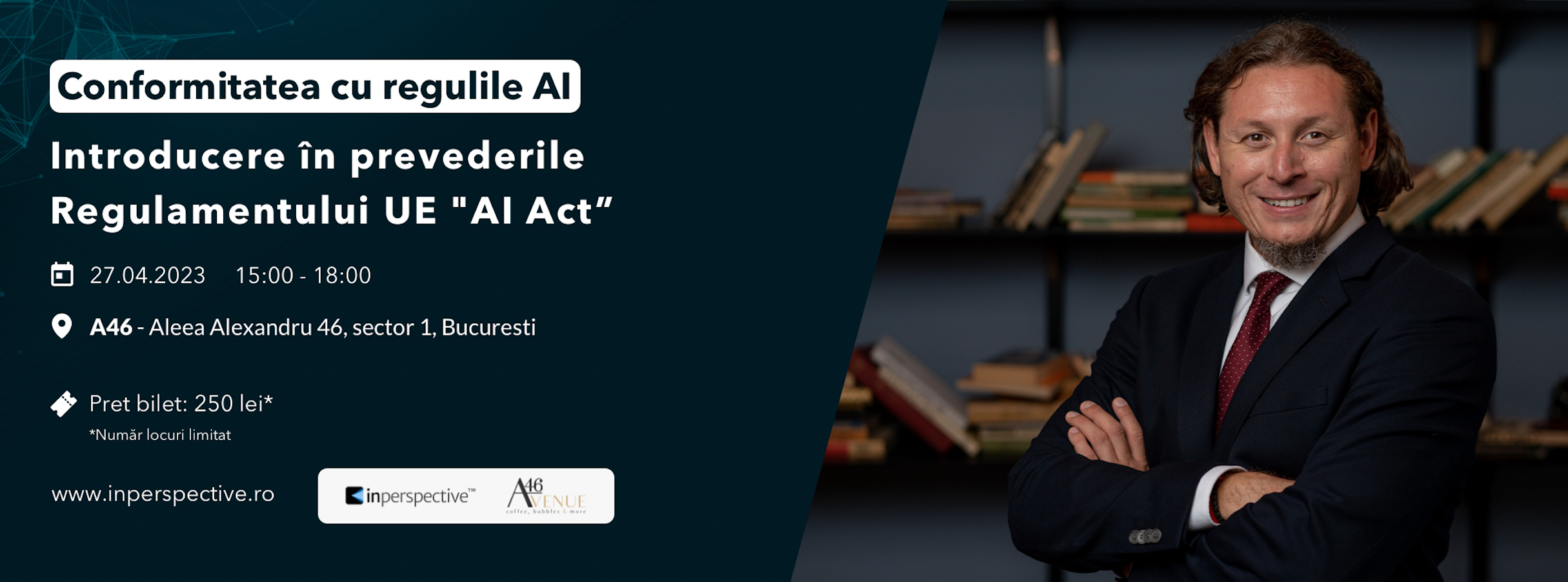 ”În cadrul acestui workshop discutăm despre impactul Regulamentului UE “Artificial Intelligence Act”, pe care îl așteptăm adoptat în prima parte a anului 2023. Vom dezbate subiecte de interes pentru segmente de business variate care utilizează tehnologii noi și care integrează inteligența artificială, cum ar fi marketing, resurse umane sau industriile creative”, spune Alexandru Gheorghe.